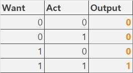 4가지 중 3가지는 고통의 경우의 수이다. 다음과 같다.⑴원하지 않는 일(0)을 하는 것(1)은 고통(0)이다.