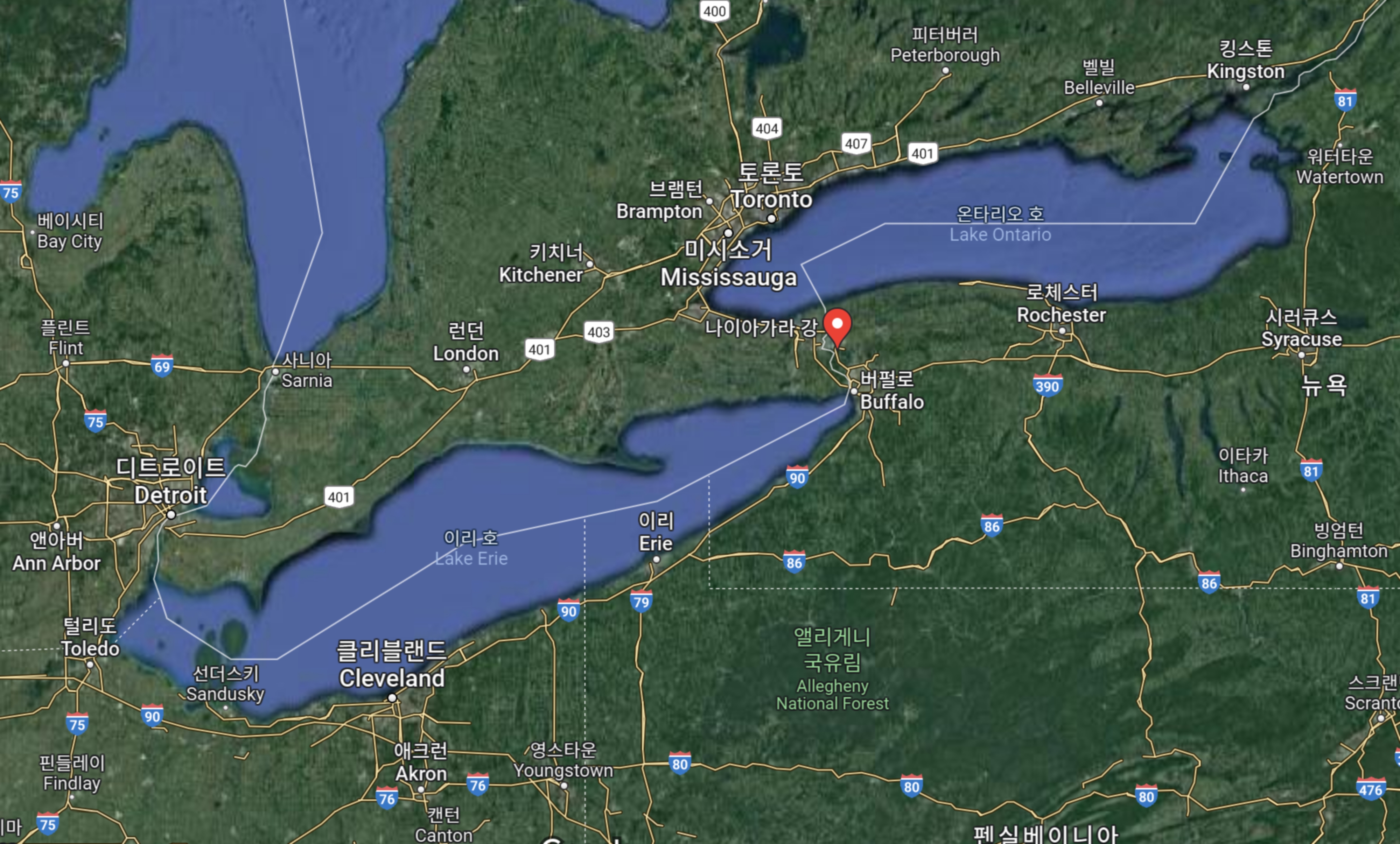 위 사진은 나이아가라강(江)의 중간에 위치한 폭포 사진이다.