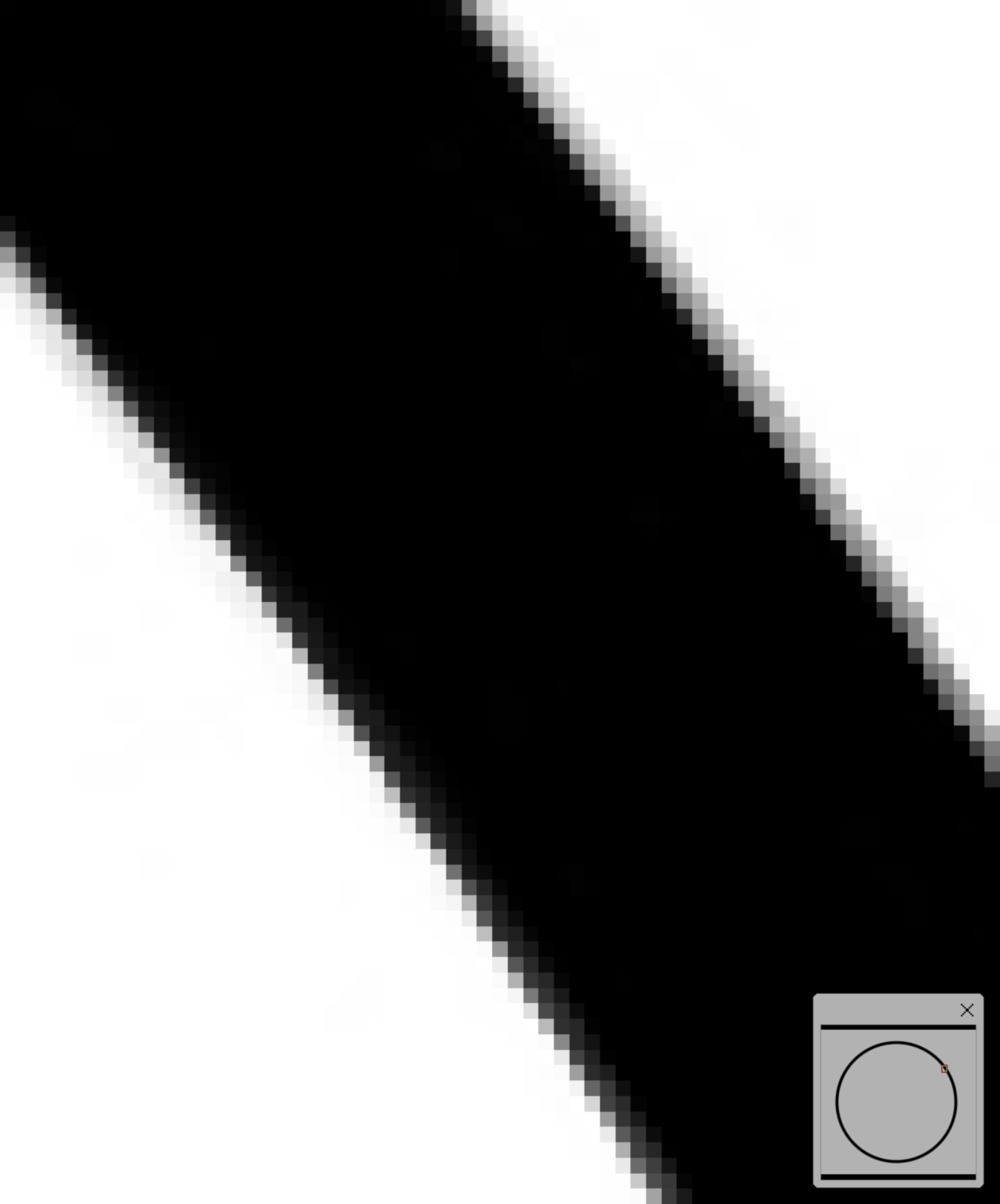 40배로 확대하게 되면 원이라는 형태에는 있을 수 없는 각진 네모의 Pixel(원자, 쿼크)이 보이게 된다.